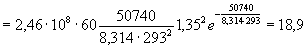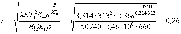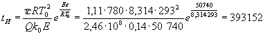 Принимая в первом приближении энергию активации Е=100000 Дж/моль, для
