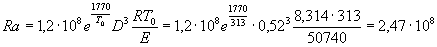 2. По уравнениям (1) и (2) найдем число Рэлея: