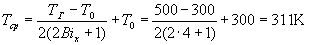 Так как последняя и предыдущая величины отличаются друг от друга менее чем на 10%, в дальнейших расчетах используется величина Bix=1,137. 5. С учетом последних значений критерия Био вычислим среднюю (между температурами горячей поверхности и прилегающего газового пространства) температуру по формуле (38):