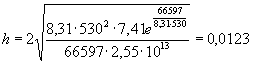8. Подставим величину dкр в уравнение (11) и найдем новое значение температуры: ТГ=518 К. 9. Используя это значение ТГ, повторим расчет по пп. 1-8 и найдем новое значение температуры: ТГ=521 К. Используя это значение ТГ, повторим расчет по пп. 1-8 и найдем новое значение температуры: ТГ=521 К. Так как предыдущее и последнее значения температуры не отличаются друг от друга, принимаем последнее значение за критическую температуру. 8. Пример расчета критического размера отложений вещества на нагретой поверхности оборудованияИсходными данными для расчета критического размера отложений на нагретой поверхности оборудования являются: • температура поверхности, на которой образуются отложения, ТГ=530 К; • температура газовой среды около холодной поверхности слоя T0=300 К; • коэффициент теплопроводности материала l=0,055 Вт/(м × К); • теплоемкость исследуемого материала с=1550 Дж/(кг × К); • теплота реакции Q=349637 Дж/кг; • энергия активации реакции окисления Е=66597 Дж/моль; • предэкспоненциальный множитель Qk0r/l= 2,55 × 1013 К/м2. 1. Принимая в первом приближении величину критерия Bi=4, в соответствии с формулами (22)-(24) определим температуру Тср, комплекс g/av и коэффициент теплопроводности воздуха: