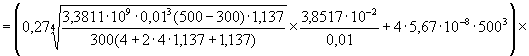 × 1. Принимая в первом приближении величину критерия Bi=4 и температуру нагретой поверхности оборудования ТГ равной 500 К, вычислим среднюю (между температурами нагретой поверхности и газового пространства) температуру Тср по формуле (22): 2. Рассчитаем комплекс g/av и коэффициент теплопроводности воздуха по уравнениям (23) и (24):