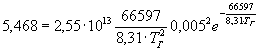 активации Е=128950 Дж/моль и предэкспоненциального множителя Qk0/l=1,05 × 2. Пример расчета критической температурыРассчитать