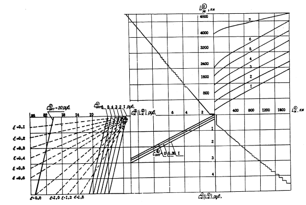 В соответствии с расценками на перевозку грузов для строительства СА(LПР=30)=1,66 руб.; СА(L0=13)=1,03 руб.; СА(LТ=22)=1,46 руб. Поставляя в выражение (5) численные значения параметров в правой части, получаем