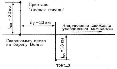 речной пристани до смесительной установки, LA пес=15 км. Расстояние перевозки