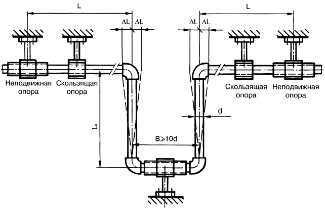 расстановки как компенсаторов, так и подвижных и неподвижных опор.