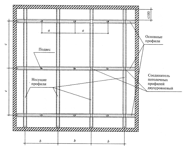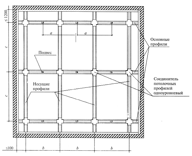 Рисунок 30 - Схема устройства каркаса подвесного потолка П 212 Межосевые расстояния при устройстве каркаса