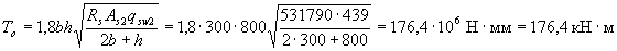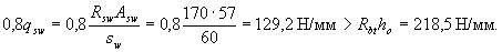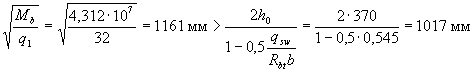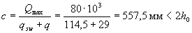 cо - длина проекции наклонной трещины, принимаемая равной с, но не более 2ho. Хомуты учитывают в расчете, если соблюдается условие qsw > 0,25Rbtb (3.49) Можно не выполнять это условие, если в формуле