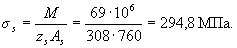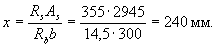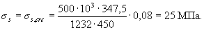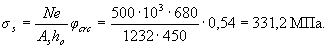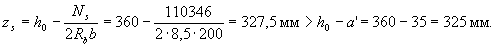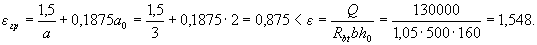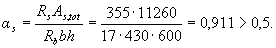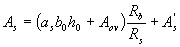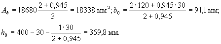 Условие (3.40) не соблюдается. Расчет повторим, заменяя в формуле (3.37) значение Rs для наименее растянутого стержня напряжением σS определенным по формуле (3.41), и корректируя значения ho и bо.