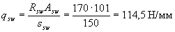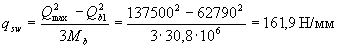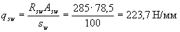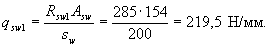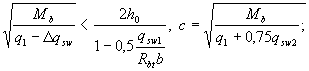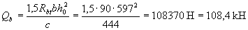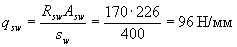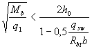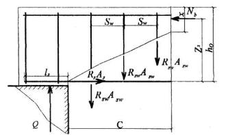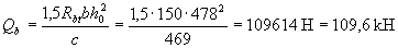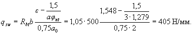 Значение Qb принимают не более 2,5Rbtbho и не менее 0,5Rbtbho. Значение с определяют согласно п.3.32. Усилие Qsw определяют по формуле Qsw = 0,75 qsw co, (3.47) где qsw - усилие в хомутах на единицу длины элемента, равное