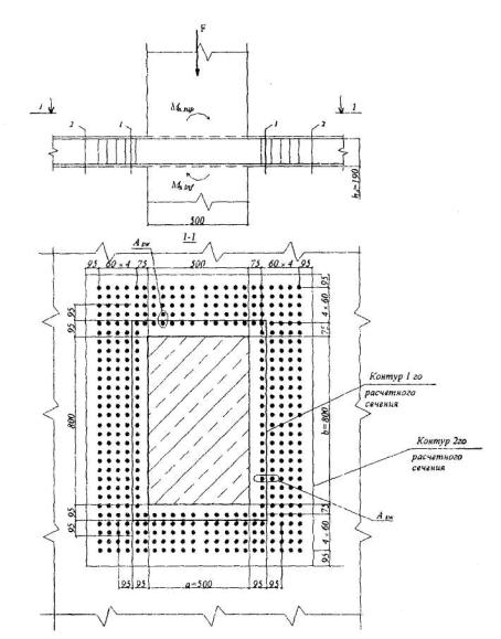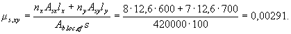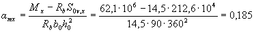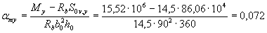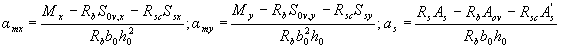 Mx =Myctgβ = 15,52·4 = 62,1 кНм. Определим необходимое количество арматуры согласно п.3.28. Принимая значения Rb, ho, Sov,x и Sov,y из примера 10 при Ssy = Ssx = 0 находим значения aтх и amy: