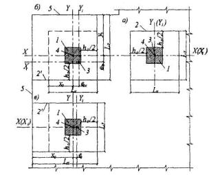 где ξR - см. табл. 3.2; b0i и h0i - расстояния от рассматриваемого стержня соответственно до наиболее сжатой грани (стороны) и до наиболее сжатой грани, нормальной к оси х (см. черт.3.5); b'ov - ширина наиболее сжатого свеса; θ - угол наклона прямой, ограничивающей сжатую зону, к оси y; значение tgθ определяется по формуле
