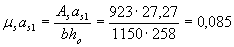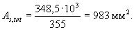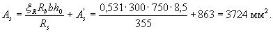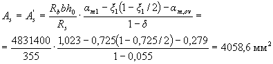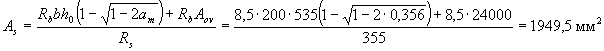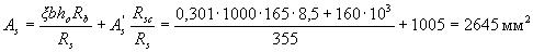 Требуемая площадь растянутой арматуры при условии ее работы с полным расчетным сопротивлением определяется по формуле