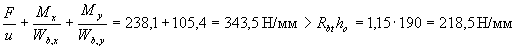 следовательно, расчет продолжаем по формулам косого изгиба. Проверим условие (3.40) для наименее растянутого стержня. Из черт.3.8 имеем boi = 30 мм, hoi = 400 - 30 = 370 мм;