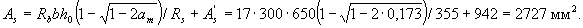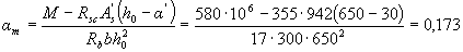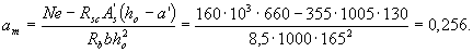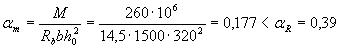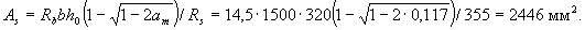 Так как am = 0,173 < ar = 0,39 (см. табл. 3.2), необходимую площадь растянутой арматуры определяем по формуле (3.26)