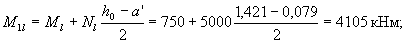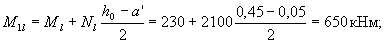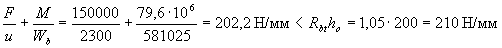 Расчетное сопротивление бетона Rb согласно п. 2.8 принимаем с учетом коэффициентов γb2 = 0,9 и γb3 = 0,9, а учитывая наличие кратковременных нагрузок, принимаем γb1 = 1,0. Тогда Rb = 8,5·0,9·0,9 = 6,89 МПа. Проверим условие (3.1), используя формулу (3.2) RbAb = Rbbh(1 – 2·e0·η/h) = 6,89·1000·150(1 - 2·0,067·4,797) = 784635 Н = 784,6кН > N=700 кН, т.е. прочность панели на действие полной нагрузки обеспечена. Поскольку Nl/N = 0,93 > 0,9, согласно п.3.3 проверим прочность панели на действии только постоянных и длительных нагрузок, т.е. при N = 650 кН. В этом случае φl = 2, и тогда