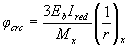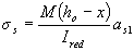 где М - изгибающий момент от внешней нагрузки (включая момент от продольной силы N относительно оси, проходящей через центр тяжести приведенного сечения); Ired - момент инерции приведенного сечения относительно его центра тяжести, определяемый как для сплошного тела по общим правилам сопротивления упругих материалов с учетом всей площади сечения бетона и площадей сечения арматуры с коэффициентом приведения арматуры к бетону равном a = Es/Eb1; Eb1 - модуль деформации сжатого бетона, принимаемый равным: при непродолжительном действии нагрузки Eb1 = 0,85Eb; (4.40) при продолжительном действии нагрузки