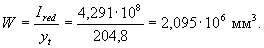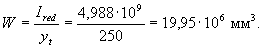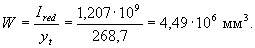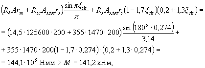 Упругий момент сопротивления Заменяя в формуле (4.9) значение W на Wpl = Wγ, где γ = 1,3 (см. табл.4.1), определяем значение Мcrc: Мсrс = Rbt,serWγ = 1,55·2,095·106 ·1,3 = 4,22·106 Нмм = 4,22 кНм. По формуле (4.26) определим коэффициент