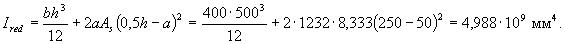 приведенного сечения при коэффициенте приведения