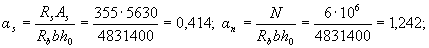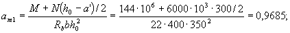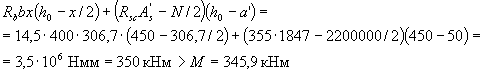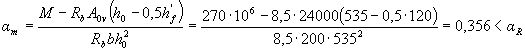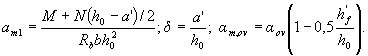 где Правую часть условия (3.18) при необходимости можно несколько увеличить путем замены значения aR на (0,7 aR + 0,3 am), где am = ξ(1 - 0,5 ξ), и принимая здесь ξ не более 1. Если х ≤ 0, прочность проверяют из условия M ≤ RsAs (h0-a') (3.19)
