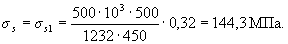 Так как am = 0,544 > ar = 0,39 (см. табл. 3.2), при заданных размерах сечения и класса бетона необходима сжатая арматура. Принимая а' = 30 мм и ξR = 0,531 (см. табл. 3.2), по формулам (3.24) и (3.25) определим необходимую площадь сечений сжатой и растянутой арматуры: