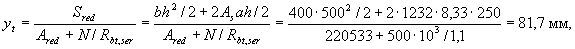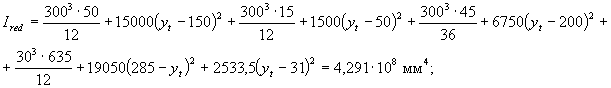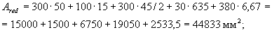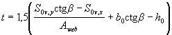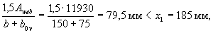 Аналогично определим значения Sov,y, Sov,x, Aweb и x1: Sov,y = 6750· (91,1 + 75/2) = 86,8·104 мм3; Sov,x = 6750· (359,8 - 90/2) = 212,5·104 мм3; Aweb = 18338 - 6750 = 11588 мм2;