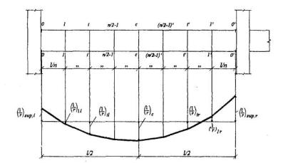 п - четное число равных участков, на которое разделяют пролет, принимаемое не менее 6; l - пролет элемента. В формулах (4.31) и (4.32) кривизны - определяют по указаниям пп.4.21 - 4.27. При этом знак кривизны принимают в соответствии с эпюрой кривизны.