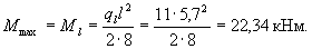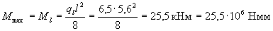 Заменяя в формуле (4.4) значение W на Wpl = Wγ, где согласно табл.4.1 γ = 1,3, определим значение Мсrс Мсrс = Rbt,serWγ = 1,1·7,16·106·1,3 = 10,24·106 Нмм. Момент в середине пролета от полной нагрузки равен