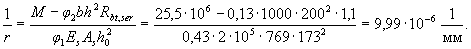 Принимаем без расчета, что плита имеет трещины в растянутой зоне, в связи с чем кривизну определим по формуле (4.45). Коэффициент армирования равен