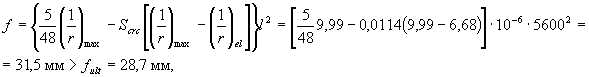 Согласно СНиП 2.01.07-85* табл.19, поз.5 определим предельно допустимый прогиб по