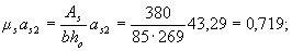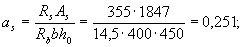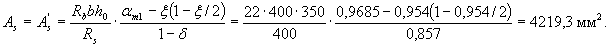 т.е. сжатая арматура действительно по расчету не требуется. Площадь сечения растянутой арматуры вычисляем по формуле (3.22)