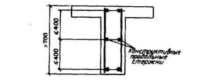 таврового (двутаврового) сечения на рабочую высоту сечения, В элементах с продольной арматурой, расположенной равномерно по контуру сечения, а также в центрально растянутых элементах минимальную площадь сечения всей продольной арматуры следует принимать вдвое большей указанных в табл.5.2 и относить их к полной площади сечения бетона. Элементы, не удовлетворяющие требованиям минимального армирования, относятся к бетонным элементам. Требования настоящего пункта не учитываются при назначении площади сечения арматуры, устанавливаемой по контуру плит или панелей из расчета на изгиб в плоскости плиты (панели). 5.12. В бетонных конструкциях следует предусматривать конструктивное армирование: - в местах резкого изменения размеров сечения элементов; - в бетонных стенах под и над проемами; - во внецентренно сжатых элементах, рассчитываемых по прочности без учета работы растянутого бетона, у граней, где возникают растягивающие напряжения; при этом коэффициент армирования ц, принимают не менее 0,025%.