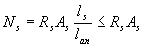 где lo,an - базовая длина анкеровки, определяемая по формуле (5.1); As,cal, As,ef - площади поперечного сечения арматуры соответственно, требуемая по расчету с полным расчетным сопротивлением и фактически установленная; а - коэффициент, учитывающий влияние на длину анкеровки напряженного состояния бетона и арматуры и конструктивного решения элемента в зоне анкеровки. При анкеровке стержней периодического профиля с прямыми концами (прямая анкеровка) или гладкой арматуры с крюками или петлями без дополнительных анкерующих устройств для растянутых стержней принимают, а = 1,0 , а для сжатых - а = 0,75 . Допускается уменьшать длину анкеровки в зависимости от количества и диаметра поперечной арматуры, и величины поперечного обжатия бетона в зоне анкеровки (например, от опорной реакции), в соответствии с указаниями п.3.45. Значения относительной длины анкеровки λan = lan/ds для стержней, работающих с полным расчетным сопротивлением диаметром менее 36 мм, приведены в табл.3.3 п.3.45. В любом случае фактическую длину анкеровки принимают не менее 0,3·lo,an, а также не менее 15ds и 200 мм. 5.34. Усилие, воспринимаемое анкеруемым стержнем арматуры Ns определяют по формуле