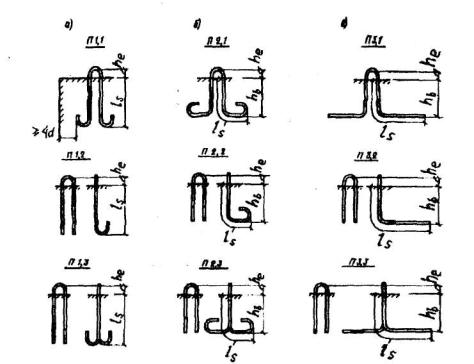 Черт.5.10. Типы строповочных петель а - свободно размещаемые в изделии из стали классов А 240 и А 300; б -размещаемые в стесненных условиях из стали класса А 240; в - то же, из стали А 300