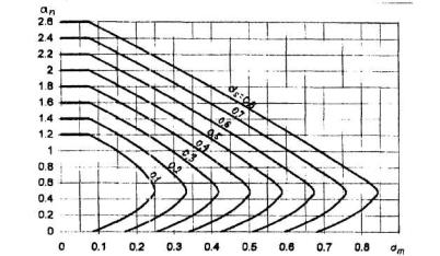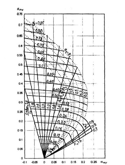Черт.3.7. График несущей способности прямоугольного, таврового и Г-образного сечений для элементов, работающих на косой изгиб