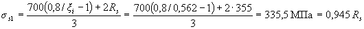 Если условие (3.40) не соблюдается, расчет сечения производится последовательными приближениями, заменяя в формуле (3.37) для каждого растянутого стержня величину Rs значениями напряжений равными