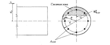 высота сжатой зоны бетона, равная sw - расстояние между хомутами, измеренное по длине элемента; ео - эксцентриситет продольной силы N относительно центра тяжести приведенного сечения, определяемый с учетом указаний п.3.6; е, е' - расстояния от точки приложения продольной силы N до равнодействующей усилий в арматуре соответственно S и S'; l - пролет элемента; lo - расчетная длина элемента, подвергающегося действию сжимающей продольной силы; i - радиус инерции поперечного сечения элемента относительно центра тяжести сечения; ds , dsw - номинальный диаметр стержней соответственно продольной и поперечной арматуры; As, A's - площади сечения арматуры соответственно S и S'; Asw - площадь сечения хомутов, расположенных в одной нормальной к продольной оси элемента плоскости, пересекающей наклонное сечение; μs - коэффициент армирования, определяемый как отношение площади сечения арматуры S к площади поперечного сечения элемента bho без учета свесов сжатых и растянутых полок; А - площадь всего бетона в поперечном сечении; Аb - площадь сечения бетона сжатой зоны: I - момент инерции сечения всего бетона относительно центра тяжести сечения элемента; Dcir - диаметр кольцевого и круглого сечений. |