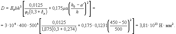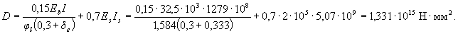 где D - жесткость элемента в предельной по прочности стадии, определяемая по формуле