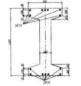 Площадь наиболее сжатого свеса полки и статические моменты этой площади относительно х и у соответственно равны: Aov= b'ov h'f = 75·90 = 6750 мм2; Sov,y = Aov (b0 + b'ov /2)=6750(90 + 75/2) = 86,06·104 мм3; Sov,x = Aov(h0 - h'f /2) = 6750(360 - 90/2) = 212,6·104 мм3. Так как Аb > Aov, расчет продолжаем как для таврового сечения. Aweb = 18680 - 6750 = 11930 мм2. Определим по формуле (3.38) размер сжатой зоны х1. Для этого вычисляем