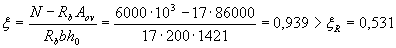 При проектировании конструкций не рекомендуется допускать превышение значения ξi над ξR более чем на 20%, при этом можно провести только один повторный расчет с заменой в формуле (3.37) значений Rs для растянутых стержней, для которых ξi > ξR , на напряжения, равные