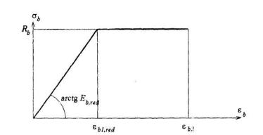 Черт.4.8.Трехлинейная диаграмма состояния сжатого бетона Кривизна на основе нелинейной деформационной модели определяется с помощью компьютерных программ. При расчете статически неопределимых