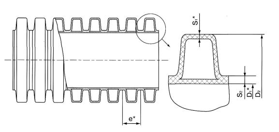 Рис.1. Конструкция и основные размеры гофрированной двухслойной трубы из полиэтилена Таблица 1