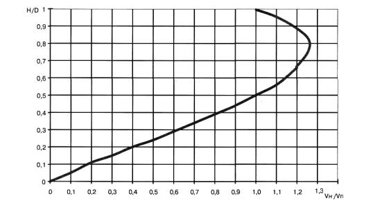 представлено в таблице 4 и графиком (рис.4). Примечание. Допускается при расчетах использовать данные приложения 2 взамен формул (3.2.2) - (3.2.5). Таблица 4Зависимость (Vн/Vn)в= f(H/D)