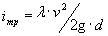 v - скорость течения жидкости, м/с; g - ускорение свободного падения, м/с2; d - расчетный (внутренний) диаметр трубопровода, м.