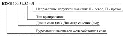 Условное обозначение типа армирования свай дано в таблице 1: Таблица 1.
