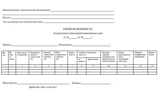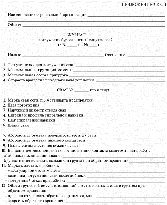 Журнал погружения буро-завинчивающейся сваи (продолжение)