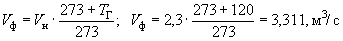 2. Определенный при использовании инструментальных методов объем газовоздушной смеси (ГВС) необходимо привести к фактическим параметрам ГВС, поступающей в атмосферу. Например, если объем газовоздушной смеси, приведенный к нормальным условиям, Vн=2,3 м3/с, а фактическая температура ТГ=120ºС, то значение объема газовоздушной смеси составит: