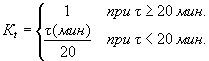 Кt - коэффициент, учитывающий длительность, τ(мин), выброса; он определяется по формуле: