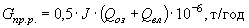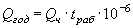 здесь Т - в секундах. Например, для ИЗА, продолжительность выброса определенного ЗВ (например, SO2) из которого составляет 5 минут (300 сек.) при средней интенсивности поступления ЗВ в атмосферу, Мн=0,5 г/с, величина Q равна: