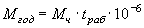 где tk,год(час) - суммарная продолжительность (в часах) работы ИЗА в k-м режиме в течение года. Значение суммарного валового (годового) выброса определенного ЗВ из рассматриваемого ИЗА, Мгод, рассчитывается как сумма годовых выбросов этого ЗВ из ИЗА при всех режимах его работы: