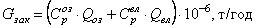 где Qч и Мч, Qкг и Мкг - расчетные средние значения выделений и выбросов рассматриваемого ЗВ (г/час, г/кг, г/ед. энергии), определенные по расходу сырья, материалов, энергии и т.п. или по полученной продукции (полупродукции) и т.д.; tраб - продолжительность (в часах) работы ИВ или ИЗА в течение года. Вкг - расход (в килограммах, ед. энергии) сырья, материалов, энергии и т.п. за год или количество произведенной продукции (полупродукции) и т.д. Значения Qгод и Мгод для определенного ИЗА связаны соотношением: